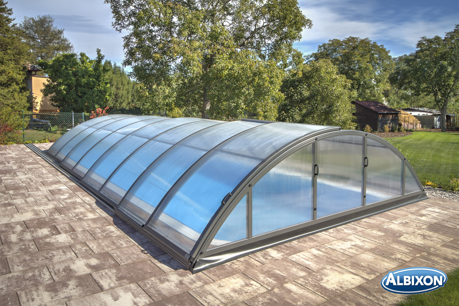 Erleben Sie mit der Albixon Pooluberdachung Klasik B eine perfekte Kombination aus zeitlosem Design, zuverlässiger Robustheit und optimalem Komfort. Dieses Modell punktet mit einer Halbrund-Form, die dank widerstandsfähiger Materialien auch bei anspruchsvolleren Wetterbedingungen beständig bleibt.