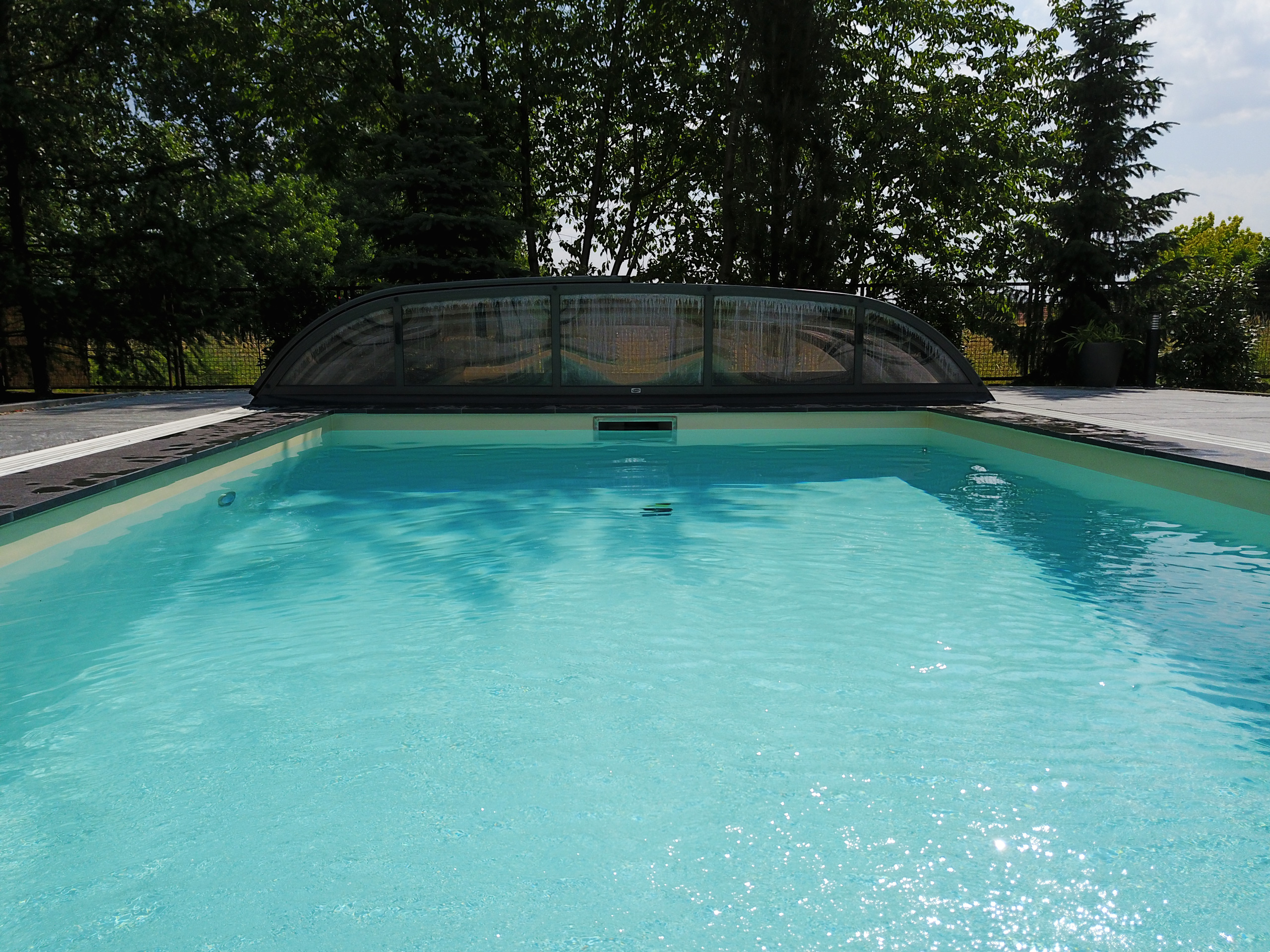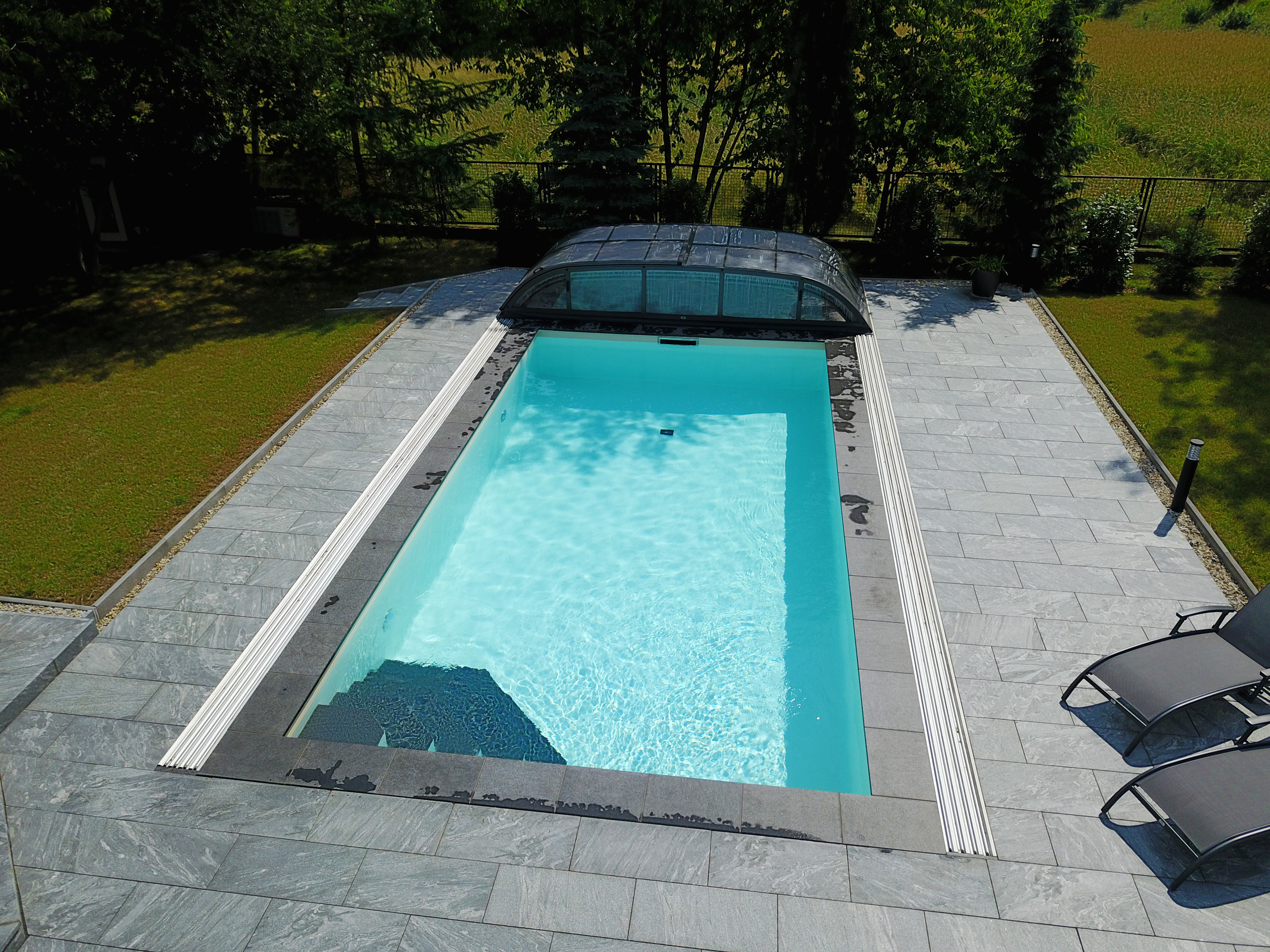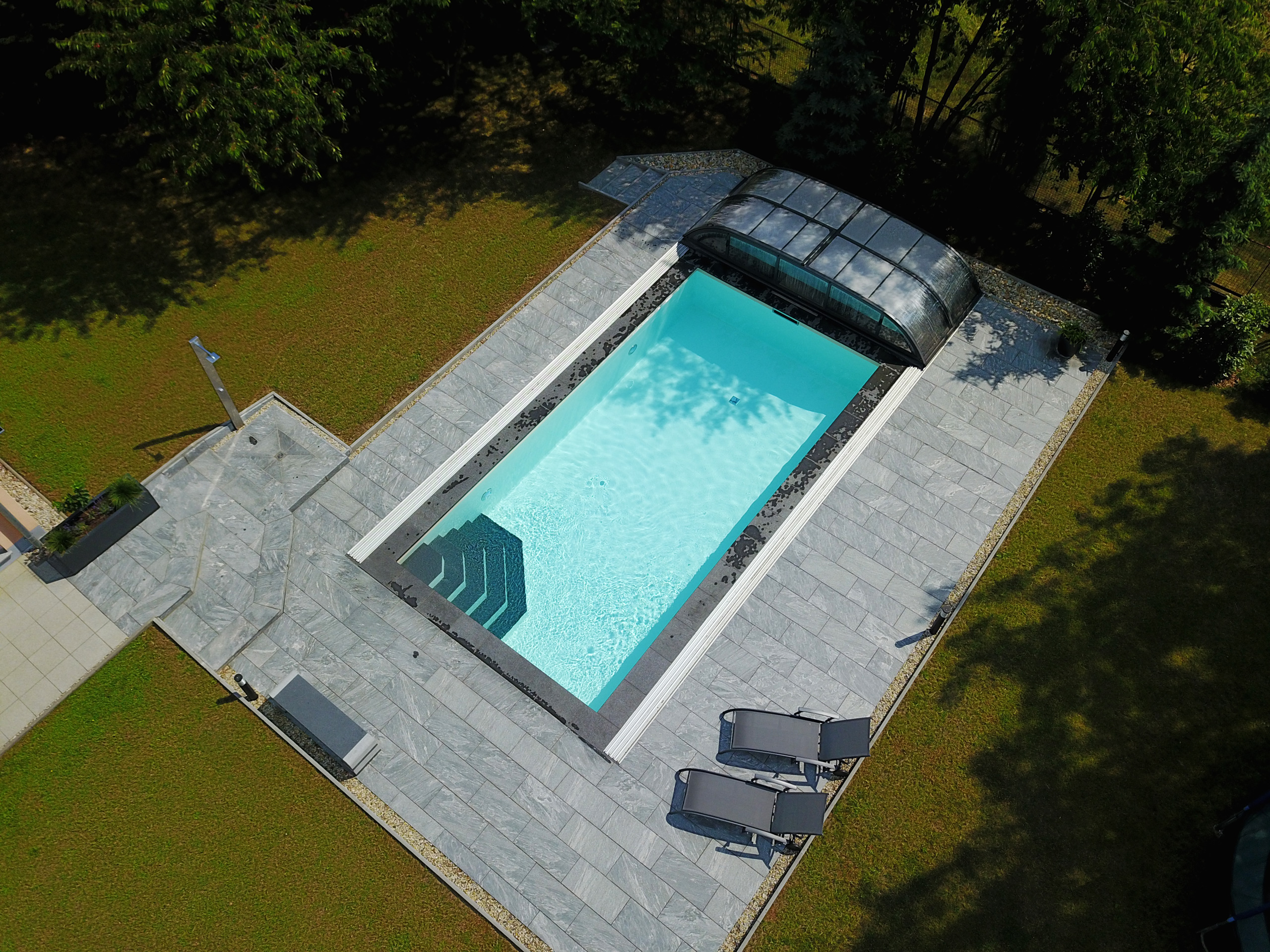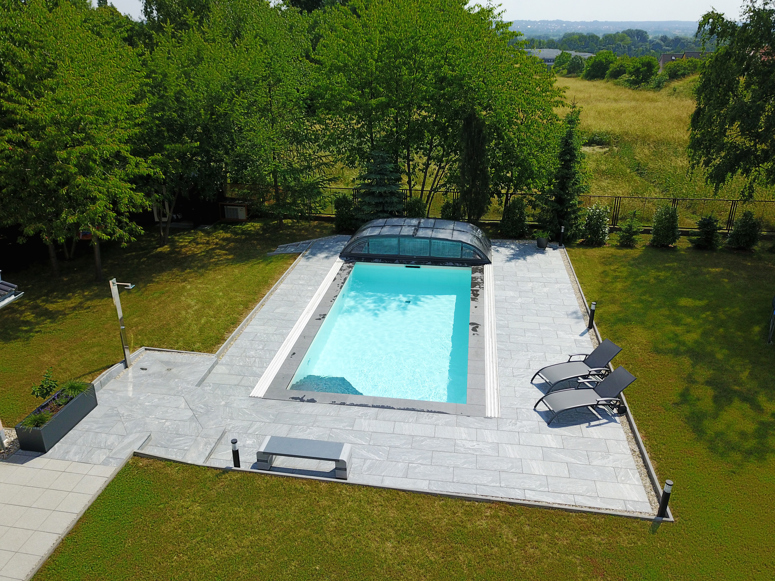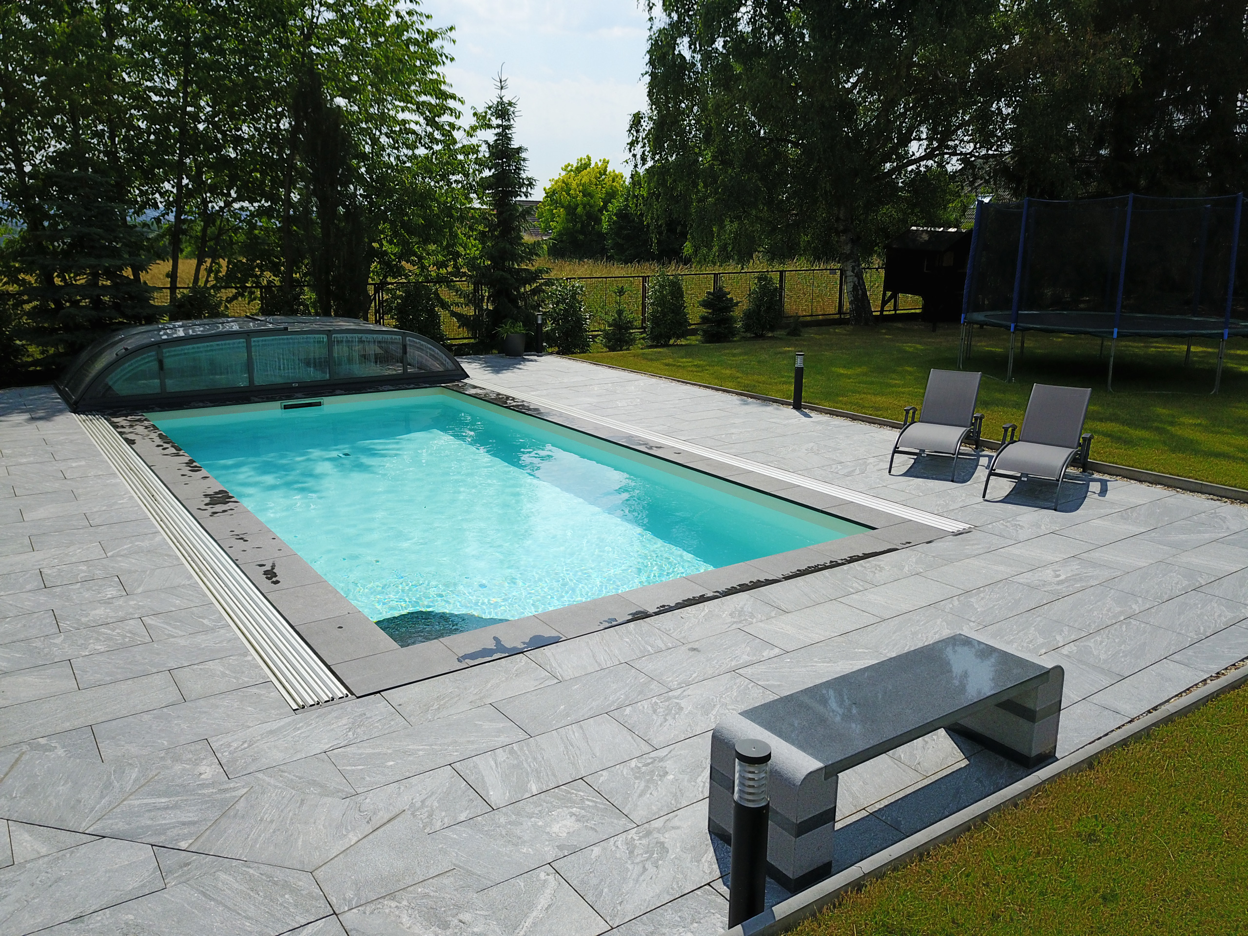 Außenbecken 4x8x1,50m mit Ecktreppe und Überdachung Dallas Clear