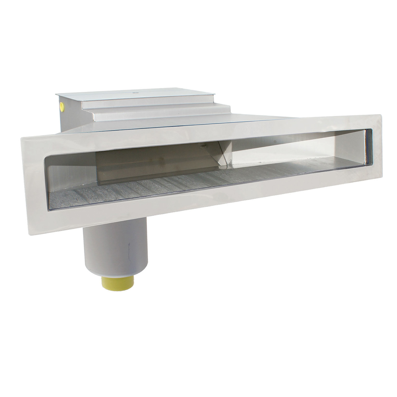 Speziell für den Einsatz in GFK Becken entwickelt. Dafür ist der Flansch zwecks einer bessere Montage um 3 Grad abgeschrägt. Komplett mit Deckel, Edelstahl-Siebkorb, Überlauf Ø 50 und einem Sauganschluss mit IG 2" und AG 2½" zur Optimierung der Rohrreibungsverluste. Dieser Oberflächenabsauger verfügt über eine Beruhigungskammer zur Aufnahme eines mechanischen oder elektronischen Wasserstandsregler. Inkl. Sichtflansch und Dichtung.