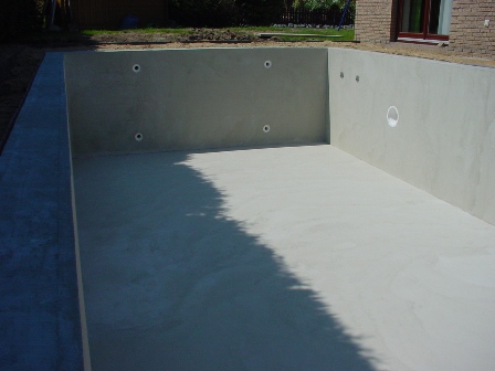 Beckenwände u. Fußboden fertig verspachtelt. Becken absolut trocken