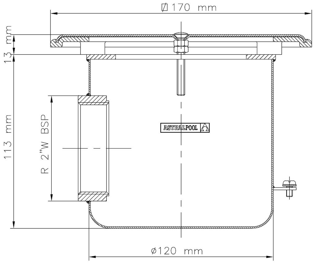 Aus Edelstahl V4A. Zum Einbau in die Beton-Bodenplatte mit Antiwirbeldeckel in einem Kunststoffrahmen. Wahlweise mit seitlichem Abgang 2" Innengewinde zum Anschluß der Bodenverrohrung.
