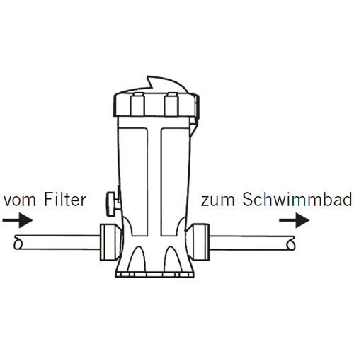 Anschlüsse | Inline mit 1½" Innengewinde oder Bypass mit Anbohrschellen für d= 50/63 mm Rohr |