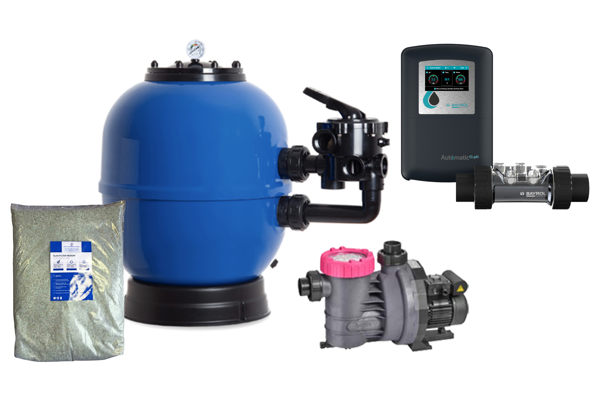| Wasseraufbereitung | UV-Anlage 75W | Bayrol Automatic Cl/pH | Bayrol Automatic Salt AS5 |