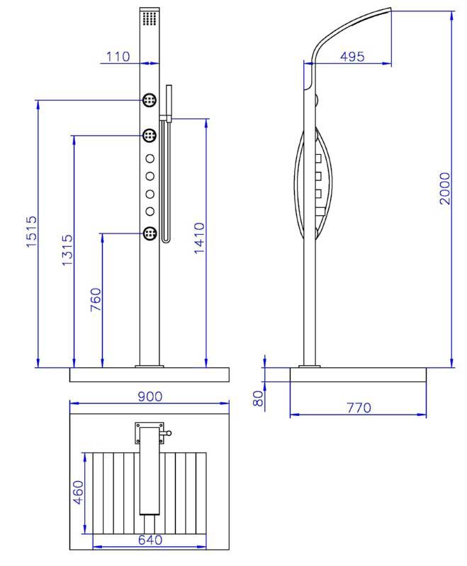 Die elegante Dusche Helena bietet viele Zusatzfunktionen wie Kopf-, Hand- und 3 verstellbare Körperbrausen und ermöglicht den puren Duschgenuß in jedem Garten.