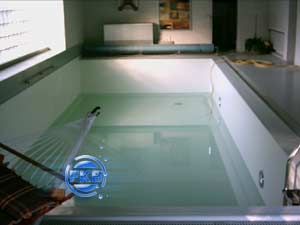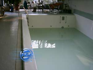 Hallenbad mit Überlaufrinne 3 seitig, Stehstufe im Becken mit Kacheln ausgekleidet