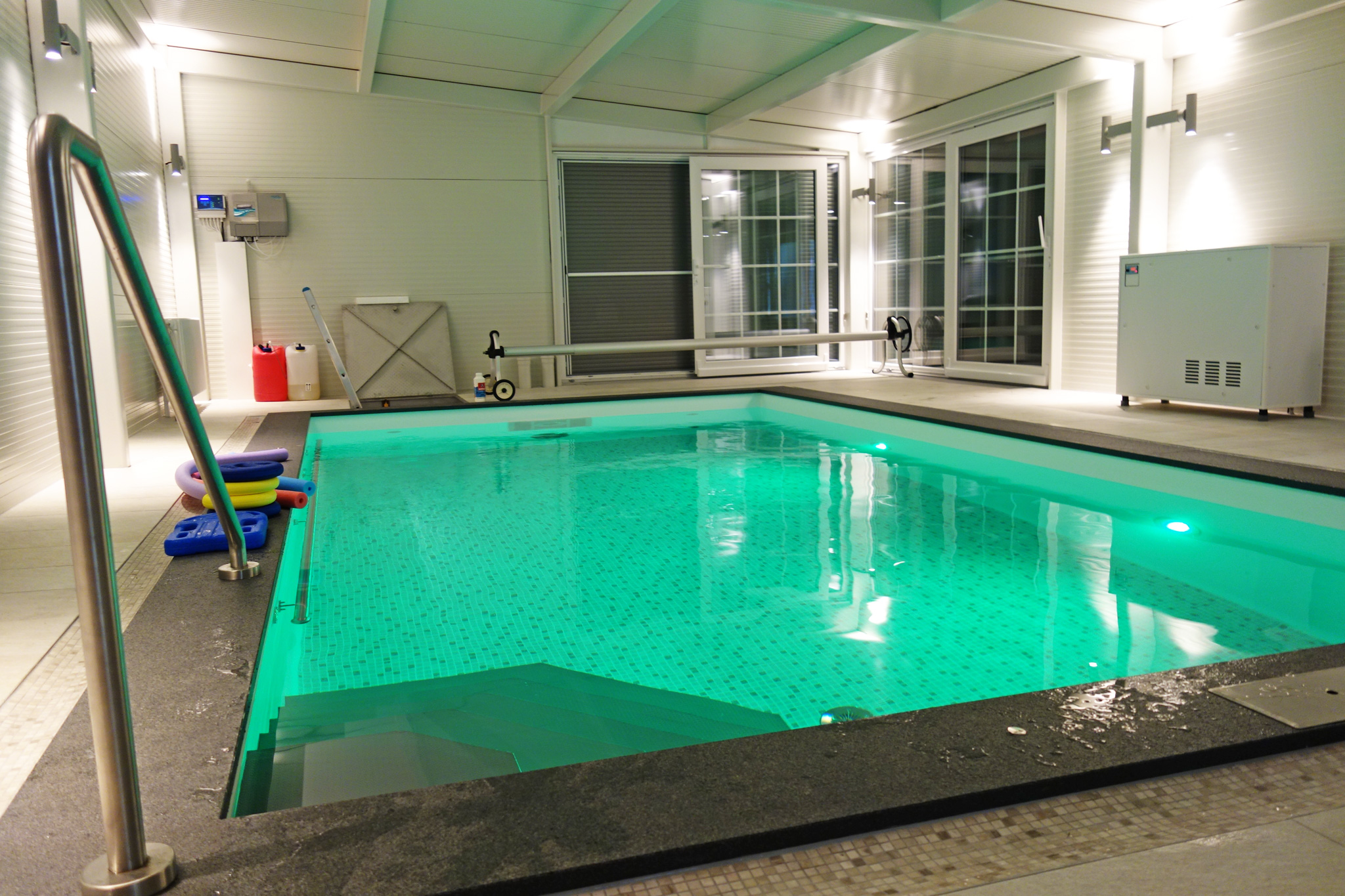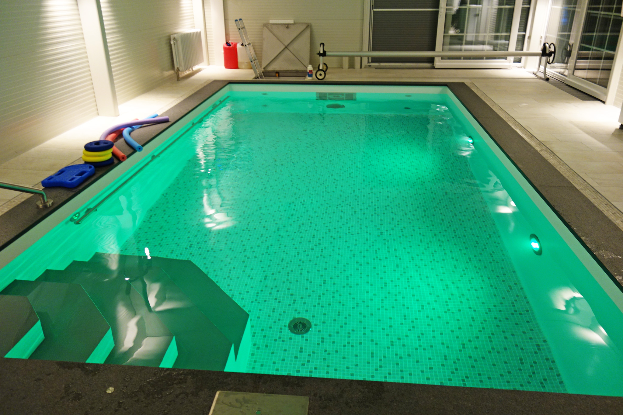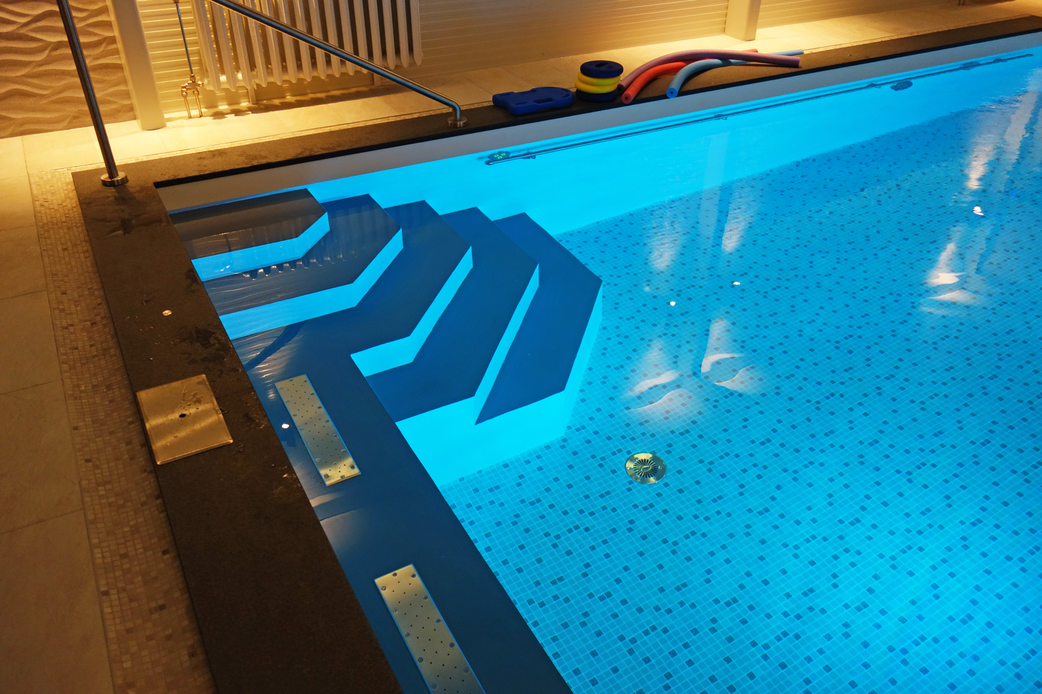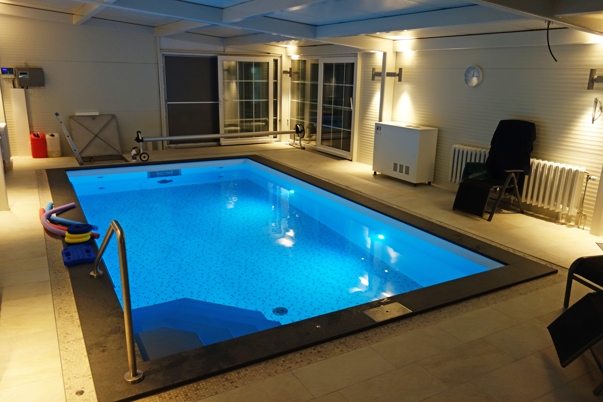 Hallenbecken 3,5x6,7x1,5m mit Ecktreppe, Podest und Strömungsturbine