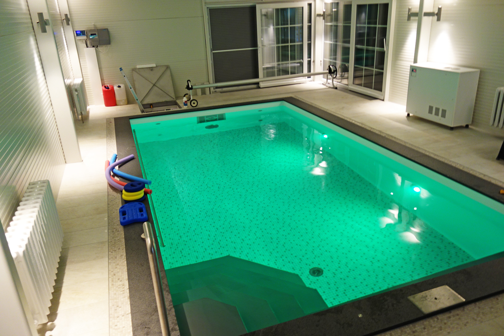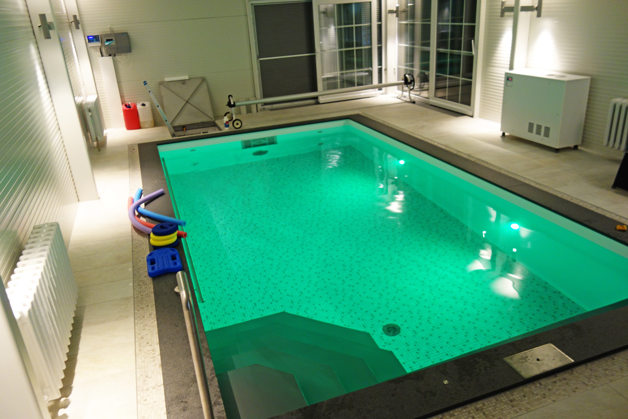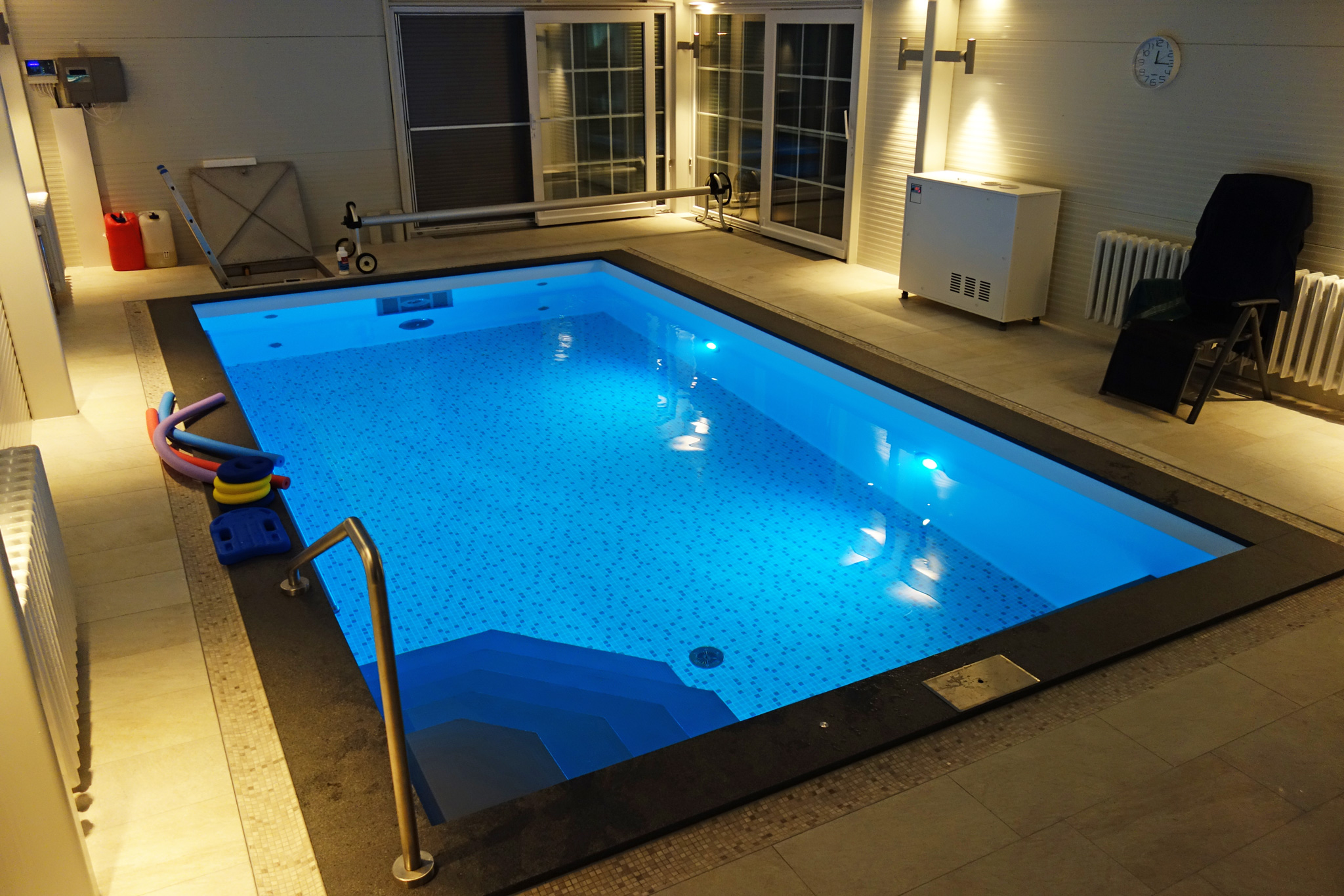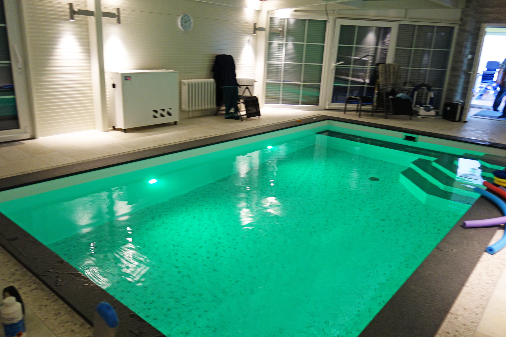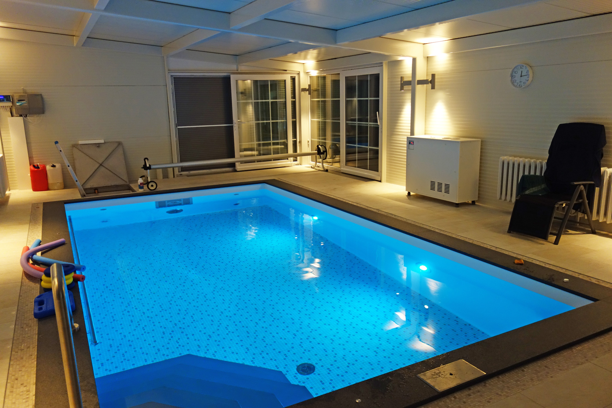 Hallenbecken 3,5x6,7x1,5m mit Ecktreppe, Podest und Strömungsturbine