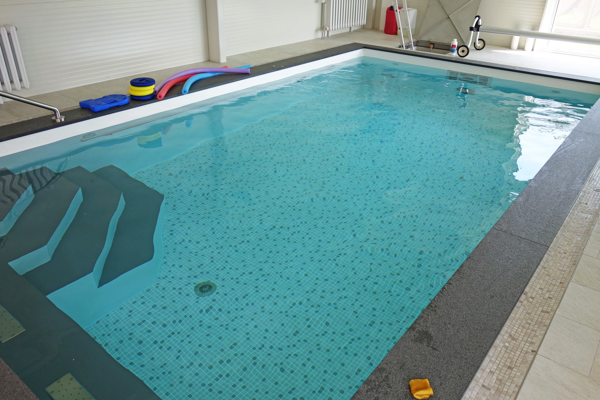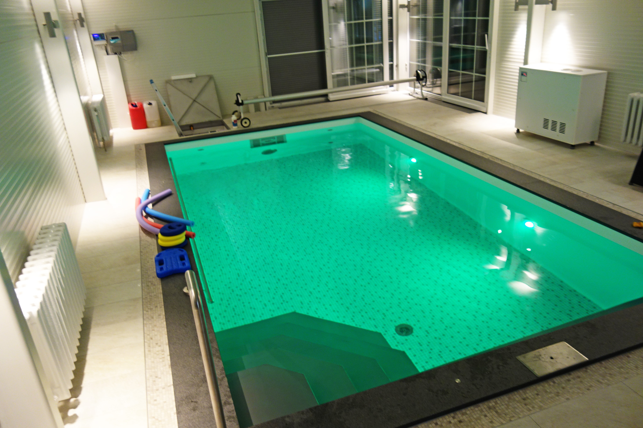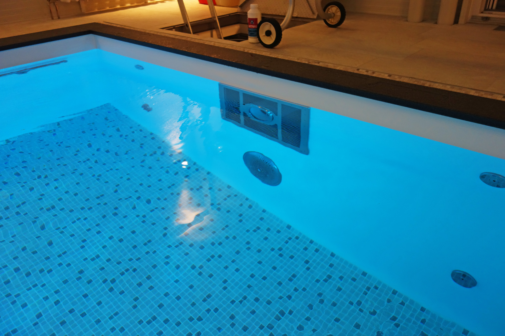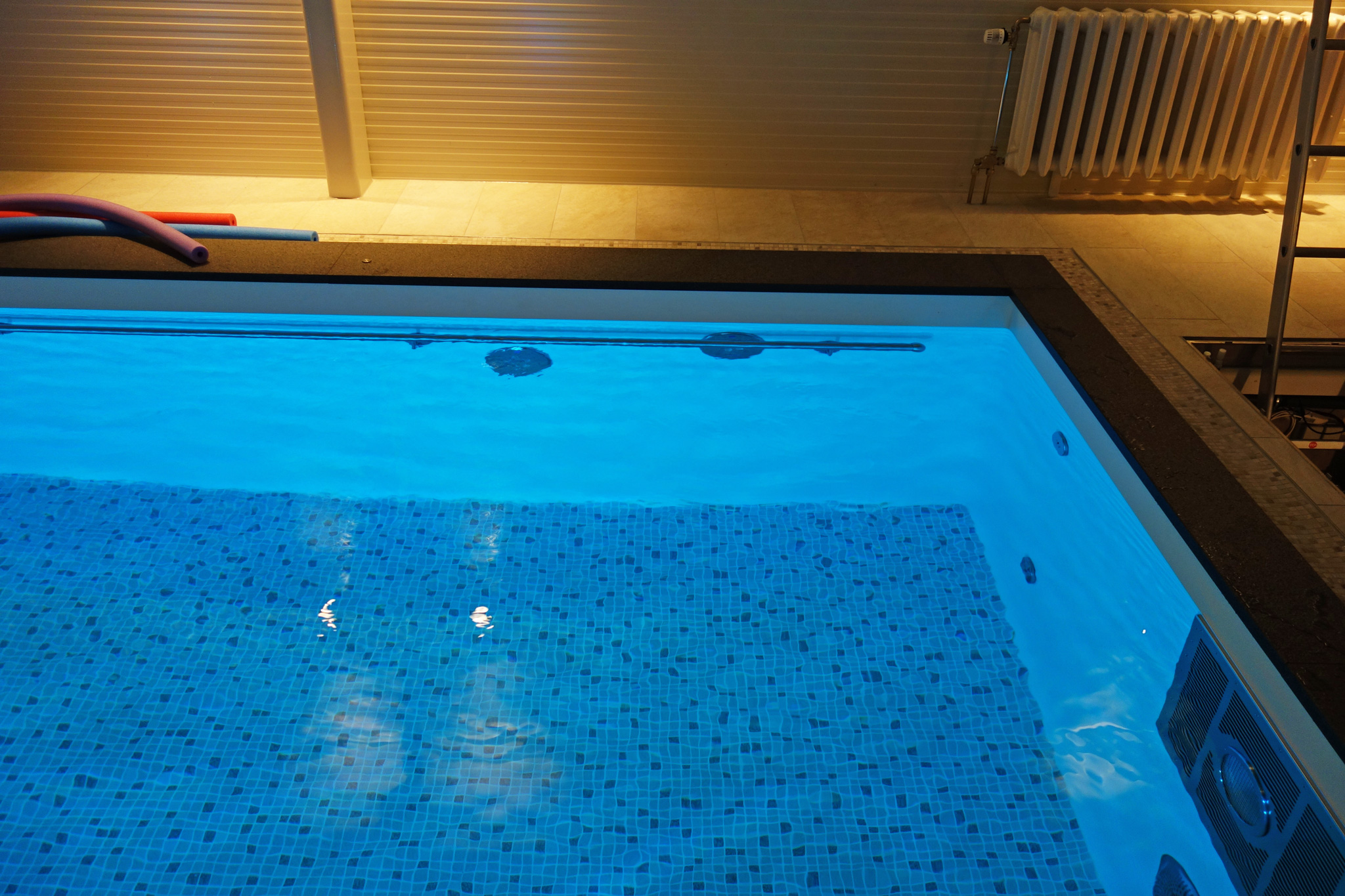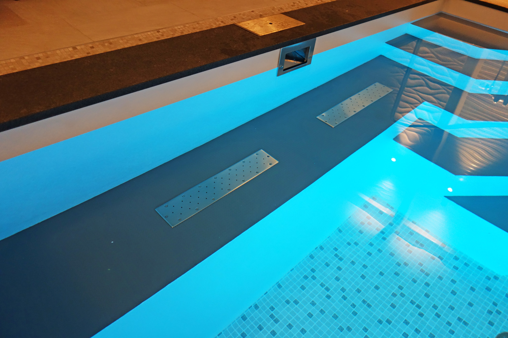 Hallenbecken 3,5x6,7x1,5m mit Ecktreppe, Podest und Strömungsturbine