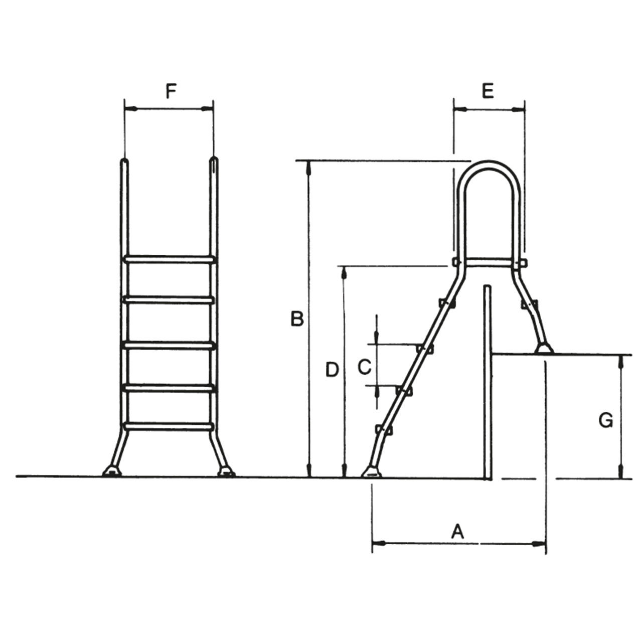 hochglanzpoliert, 1 Stufe außen, Holmdurchmesser 43 mm, Kunststoffstufen, Plattform inkl. Beckenhöhe bis maximal 1,5m