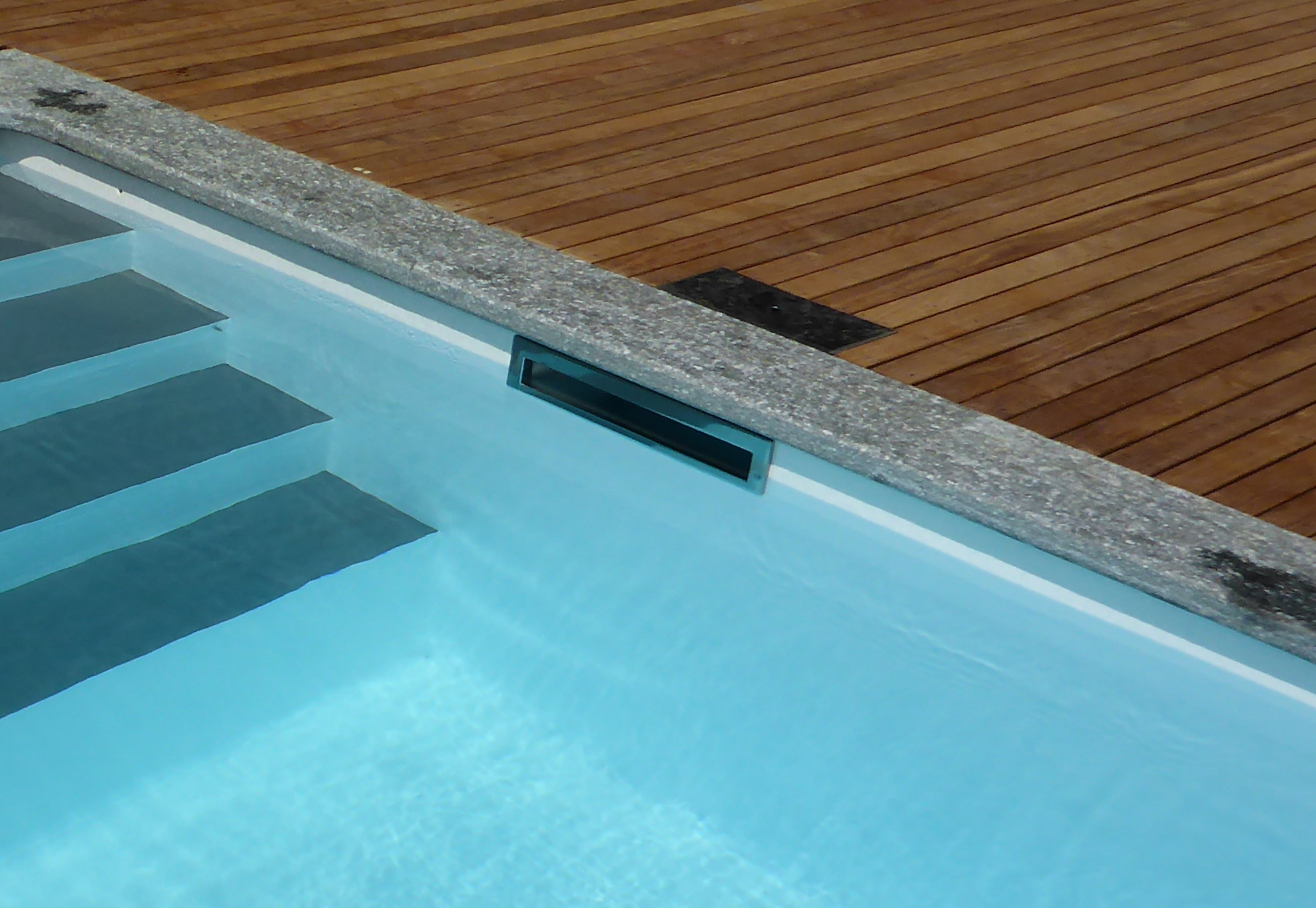Das Schwimmbadwasser muss täglich gefiltert werden, damit sich der Schwimmer auf gereinigtes und kristallklares Wasser freuen kann. Die Einbauteile aus Edelstahl des Schwimmbeckens dienen der Filteranlage zur Ansaugung und Rücktransport des Badewassers. Oberflächenabsauger ( Skimmer ), Bodenablauf und Einlaufdüsen sind daher besonders wichtig und sollten richtig ausgewählt und im Schwimmbad positioniert.