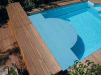 THERMO-MATIC-Schwimmbadabdeckungen lassen sich in die neue oder bestehende Schwimmbadumgebung raffiniert einbinden. Die Aufrollvorrichtung kann am Beckenrand mit einer formschönen Verkleidung oder gar mit einer eleganten Sitzbank montiert werden. Die unsichtbare Unterflurmontage ist ebenso möglich wie die Wandmontage. | ||||||||||