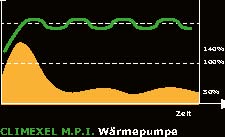 MPI Wärmepumpen variable Geschwindigkeitsstufen (11 bis 100 Hz) möglich. Dadurch kann sich das Gerät automatisch dem Heizbedarf sowie den klimatischen