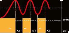 Die für das Gerät erforderliche Stromstärke ist niedriger als die eines entsprechenden An/ Aus-Geräts; Kabelquerschnitte und thermischer Schutz können demzufolge reduziert werden.