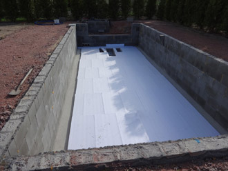 Treppen und Podeste sollten dabei mit Ziegel- oder Betonsteinen untermauert werden. Zur seitlichen Positionierung sollten über dem Beckenkopf Schnüre gespannt werden. Solange noch kein Wasser im Schwimmbecken ist, kann man das Becken ggf. noch verschieben.
