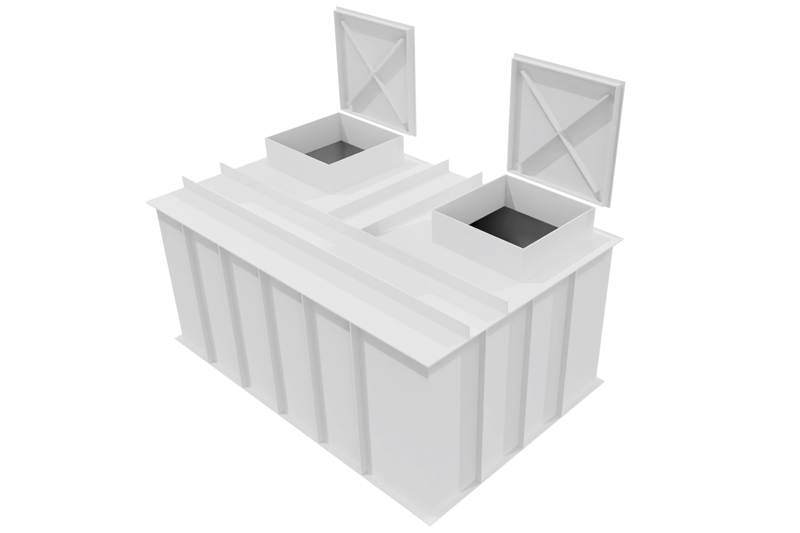 Rechteckiger Kombi-Schacht zum Einbetonieren inkl. Ausgleichsbehälter für Überlaufbecken | |