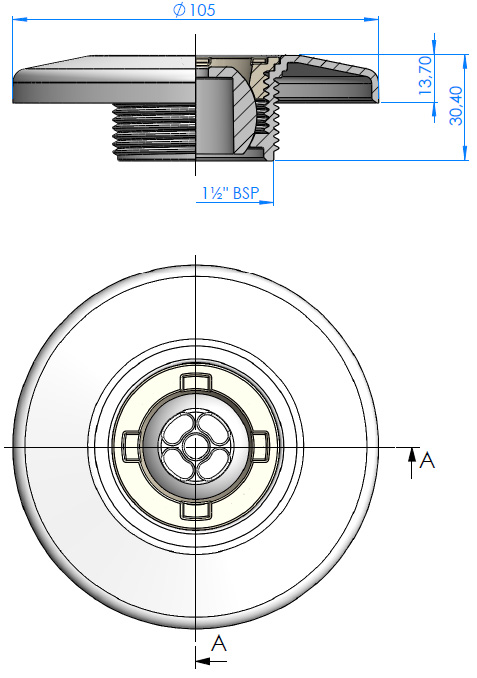 Die Einlaufdüse ist für den Anschluss an gängige europäische Rohrsysteme und Poolschläuche ausgelegt. Bitte prüfen Sie vor dem Einbau die Anschlussgröße Ihrer Wanddurchführung und der Pooltechnik, um eine dichte Verbindung zu gewährleisten. -
