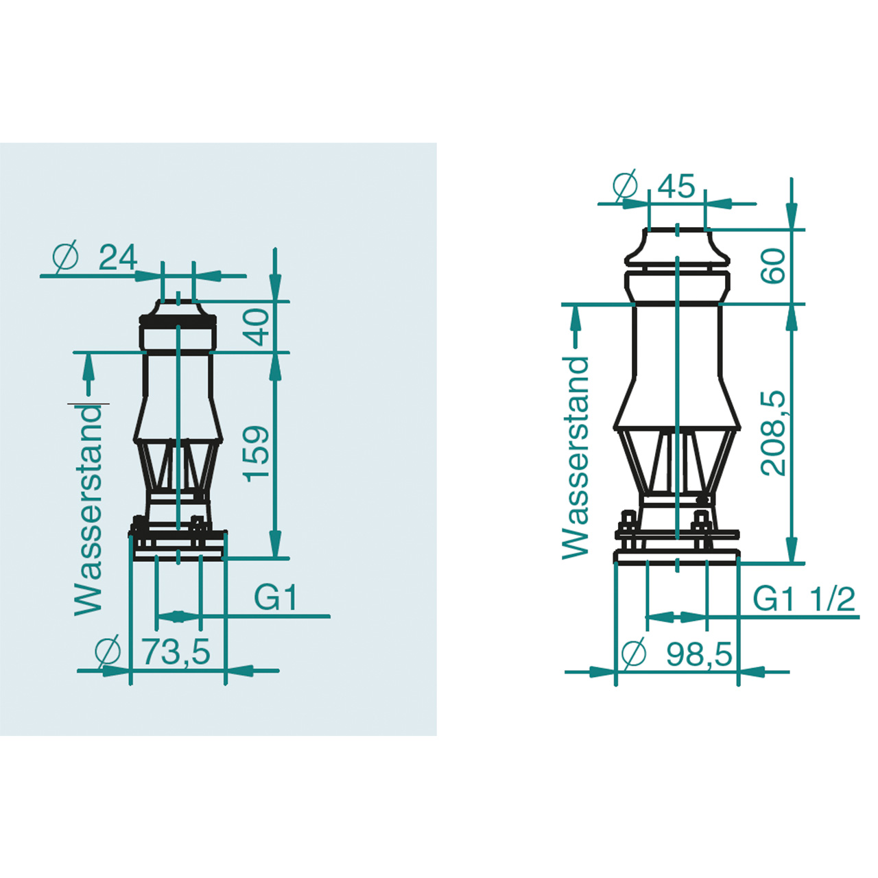 Wasserstandsabhängige Injektordüsen, die ein weißschäumendes, schlankes Wasserbild in fast zylindrischer Form ergeben.
