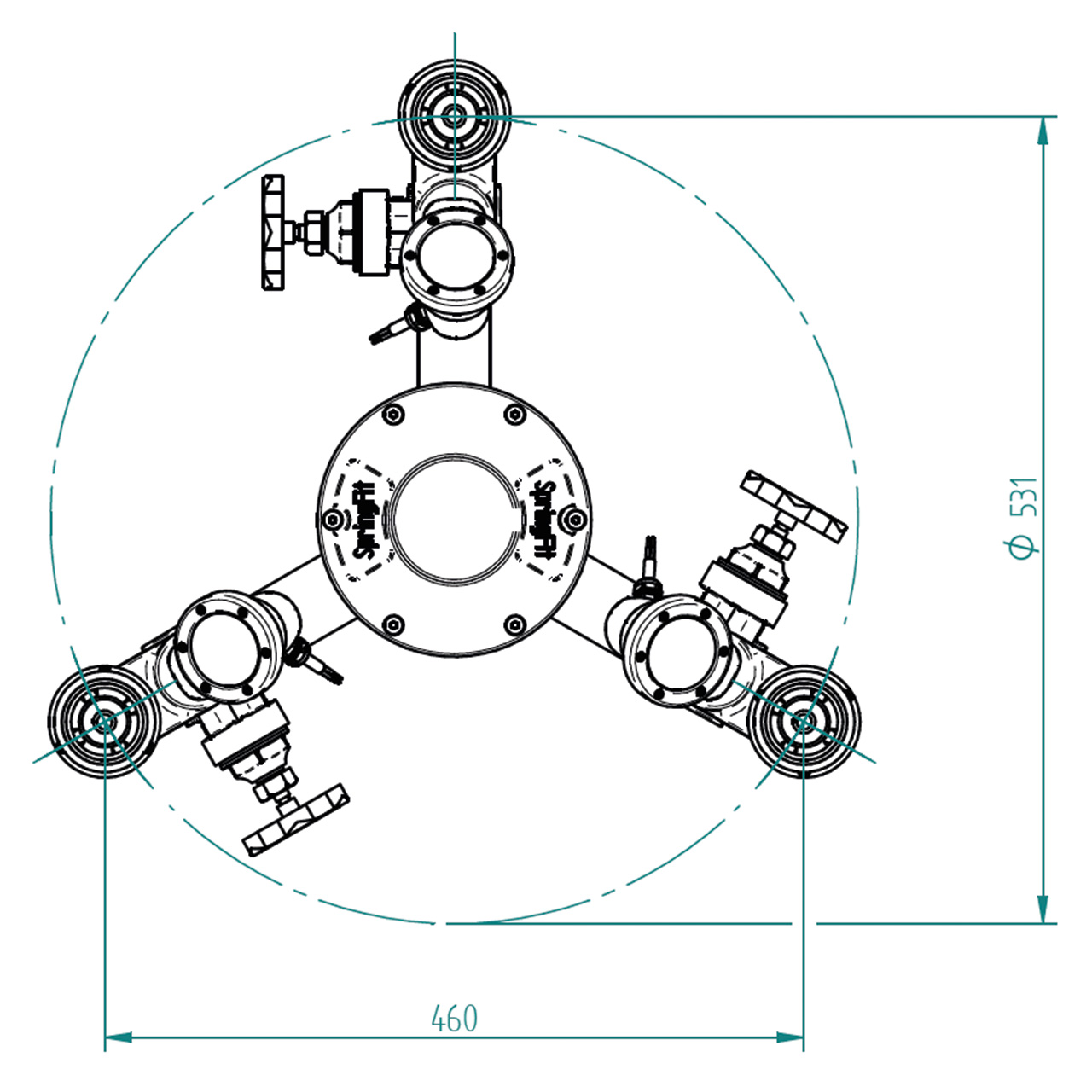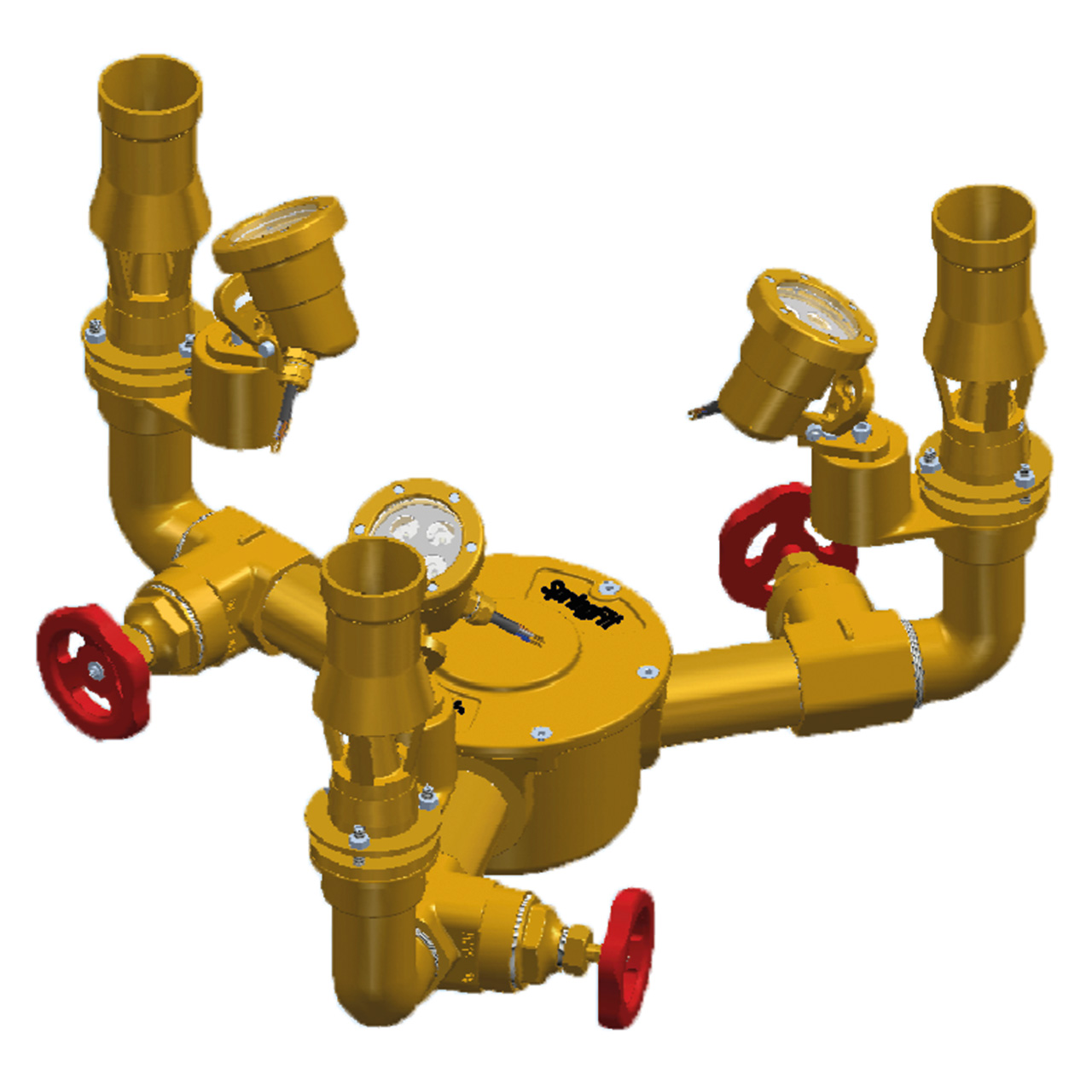Springbrunnenbaugruppe aus Rotguss - Cascade 50 3-fach mit 3 RGB POWER LED