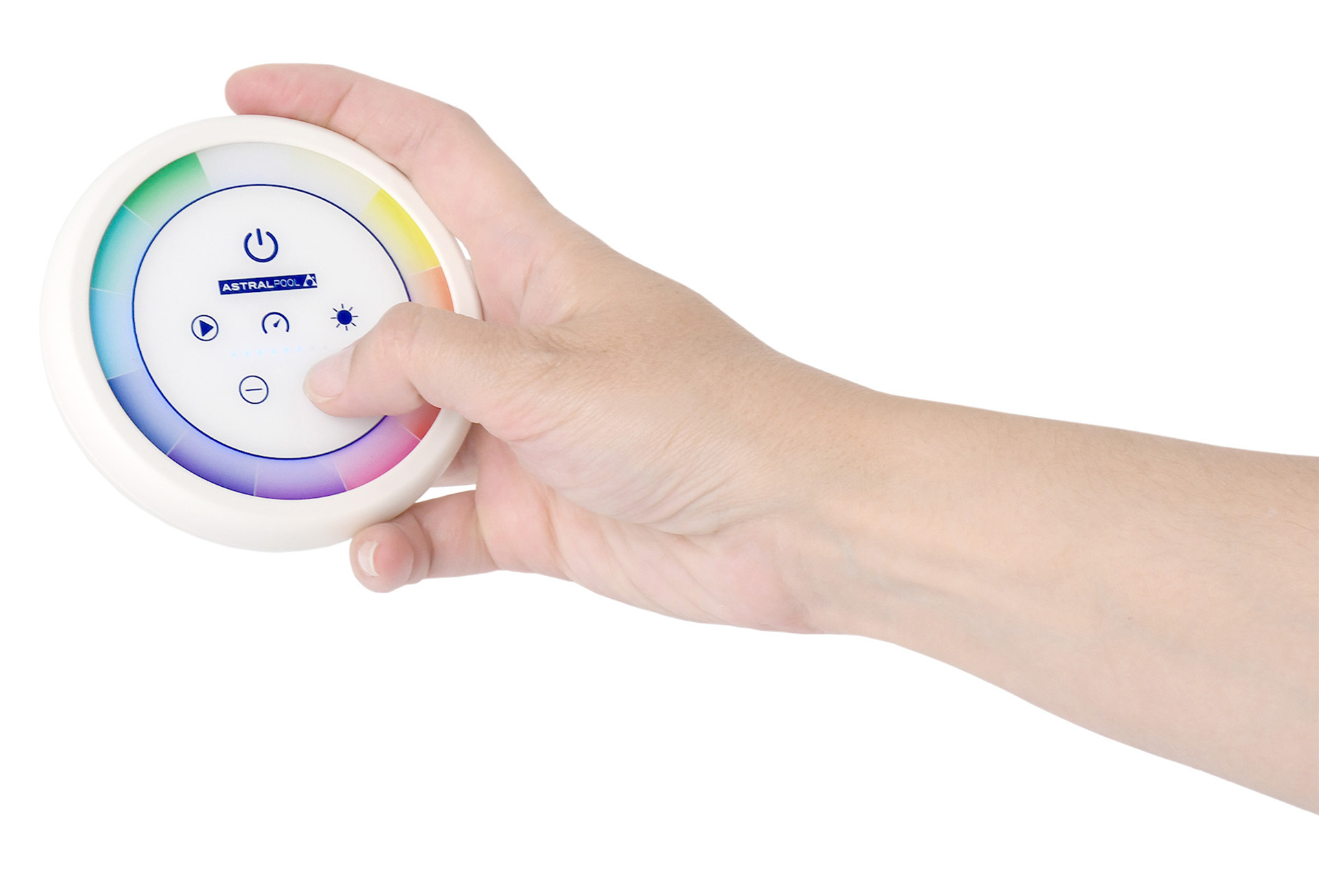 Die Fernbedienung leuchtet bei jedem Befehl kurz in der gewählten Farbe auf. So sehen Sie sofort, ob der Befehl gesendet wurde – auch ohne auf die Poolleuchte zu schauen. -
