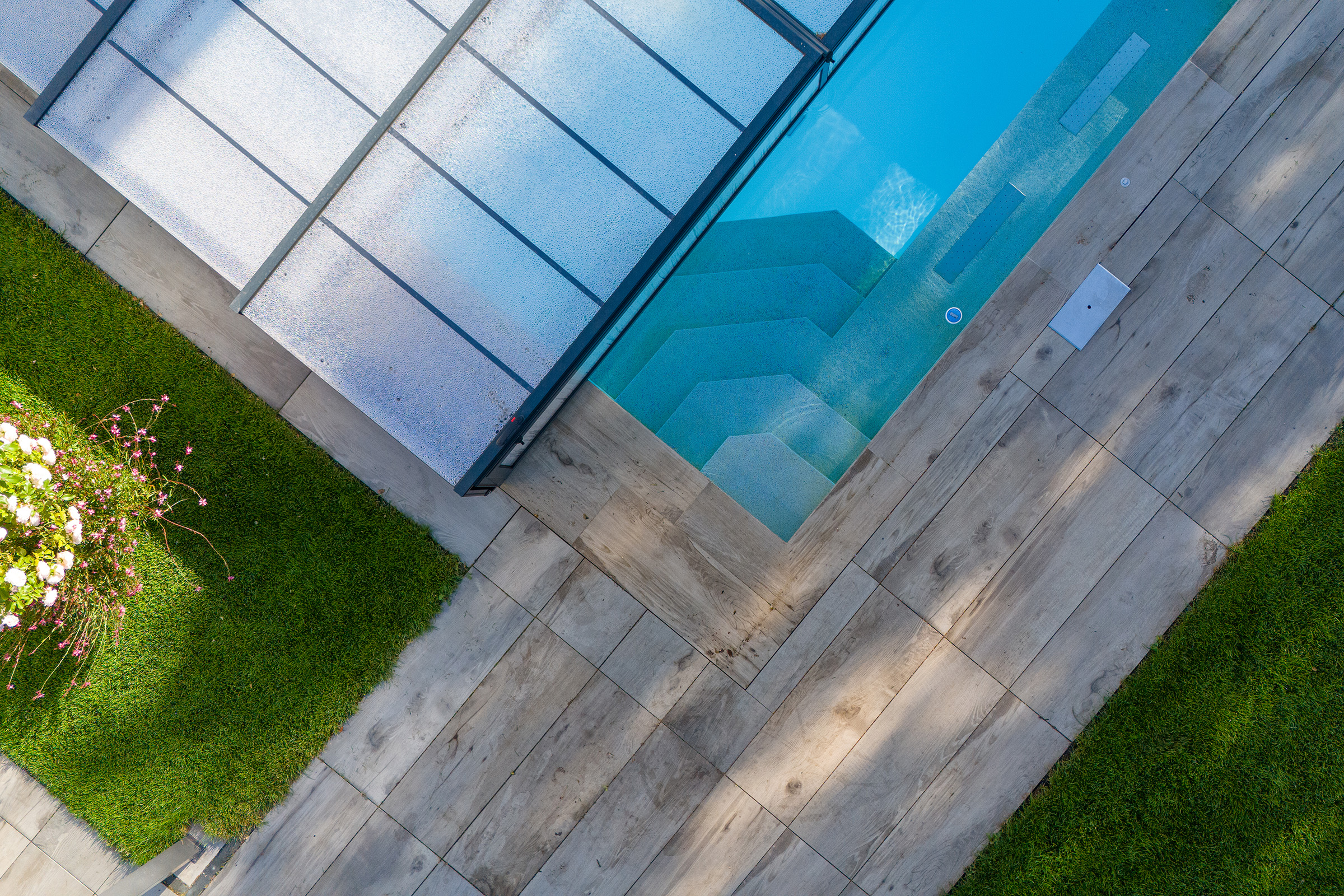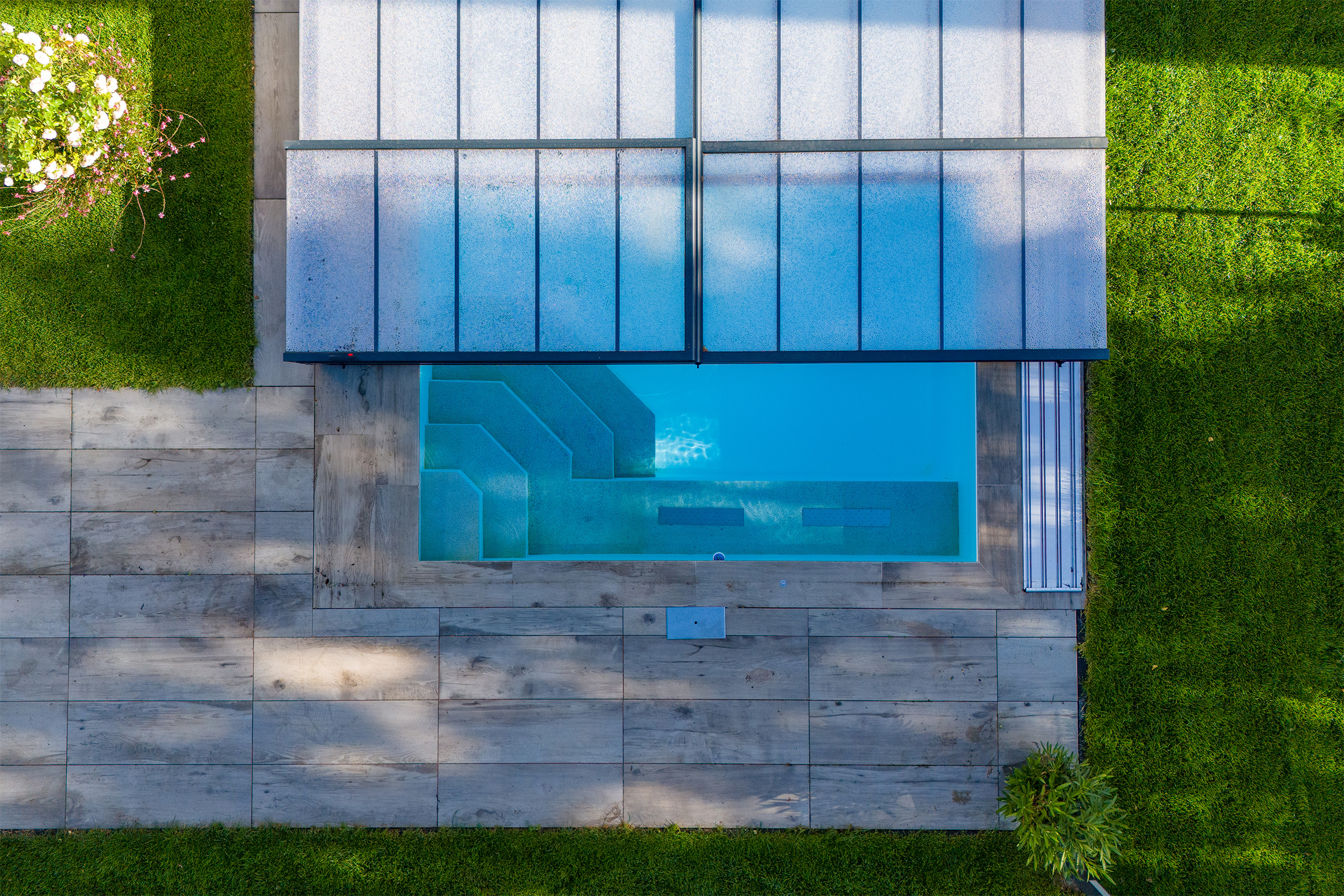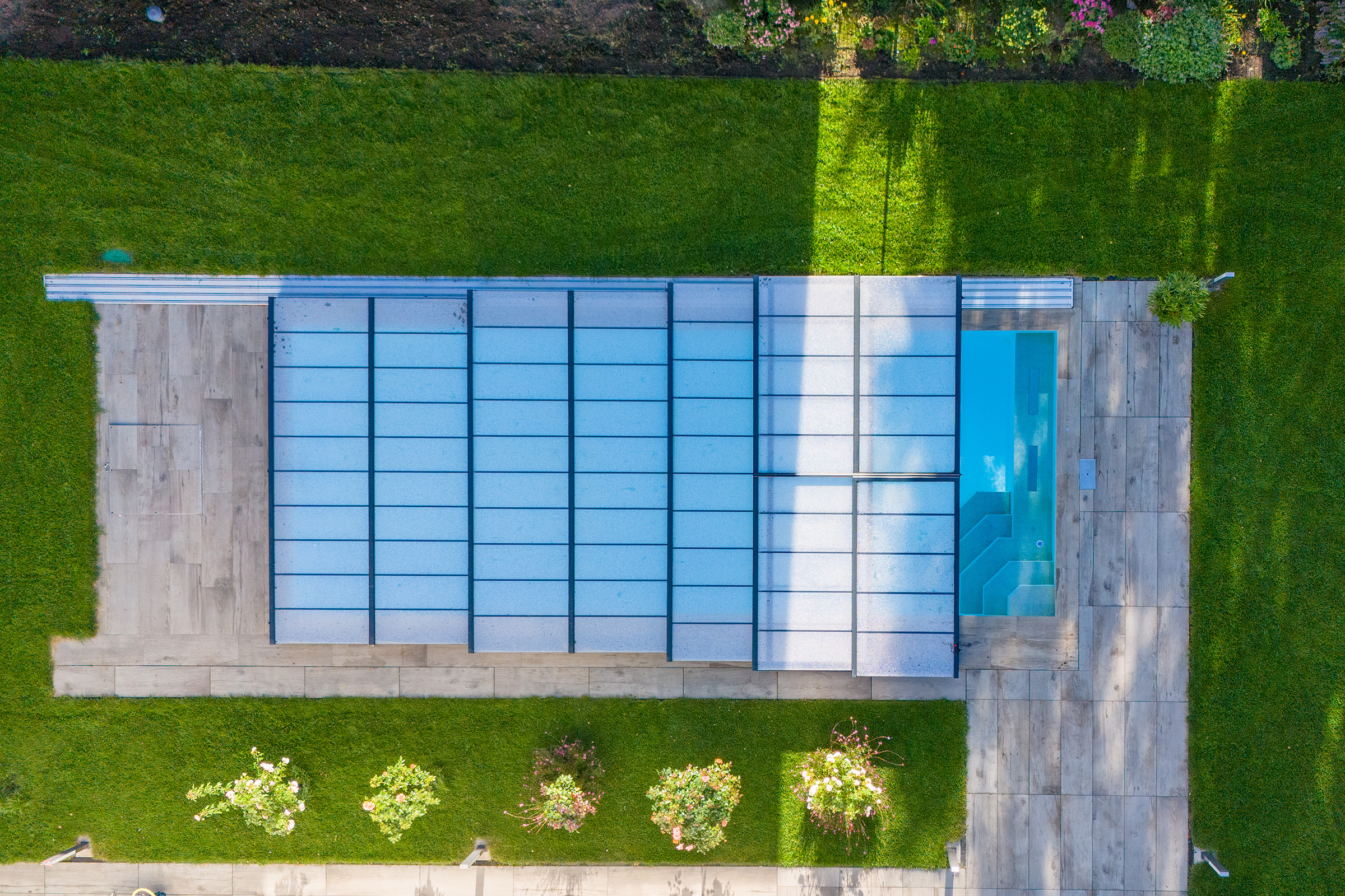 Für ein stets sauberes und gesundes Wasser sorgt die automatische Chlordosieranlage OSF Waterfriend MRD2, ergänzt durch eine zusätzliche UV Desinfektion. Und um Ihr Poolerlebnis das ganze Jahr über zu genießen, haben wir eine Überdachung Prestige in RAL 7016 integriert. Diese 4-modulige Konstruktion mit einseitiger Laufschiene und Seiteneingang im größten Modul schützt Ihr Becken vor Witterungseinflüssen und sorgt für zusätzliche Sicherheit.