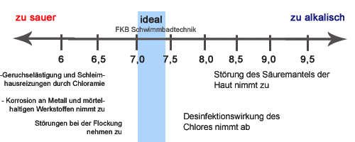Der pH-Wert ist für das Badewasser von wesentlicher Bedeutung, da er unter anderem die Wirksamkeit des Desinfektionsmittels und die Verträglichkeit des Wassers für Haut, Augen und Werkstoffe beeinflusst.