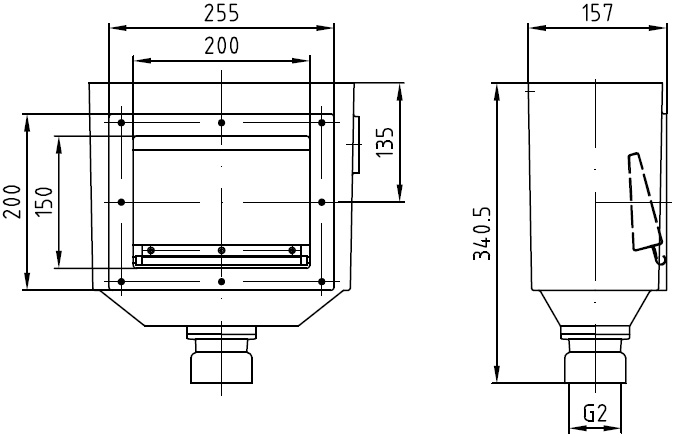 NiSn-beschichtet. Einbautiefe 160 mm, mit Skimmerklappe und Siebkorb aus Kunststoff und einem Anschlußgewinde R 2".