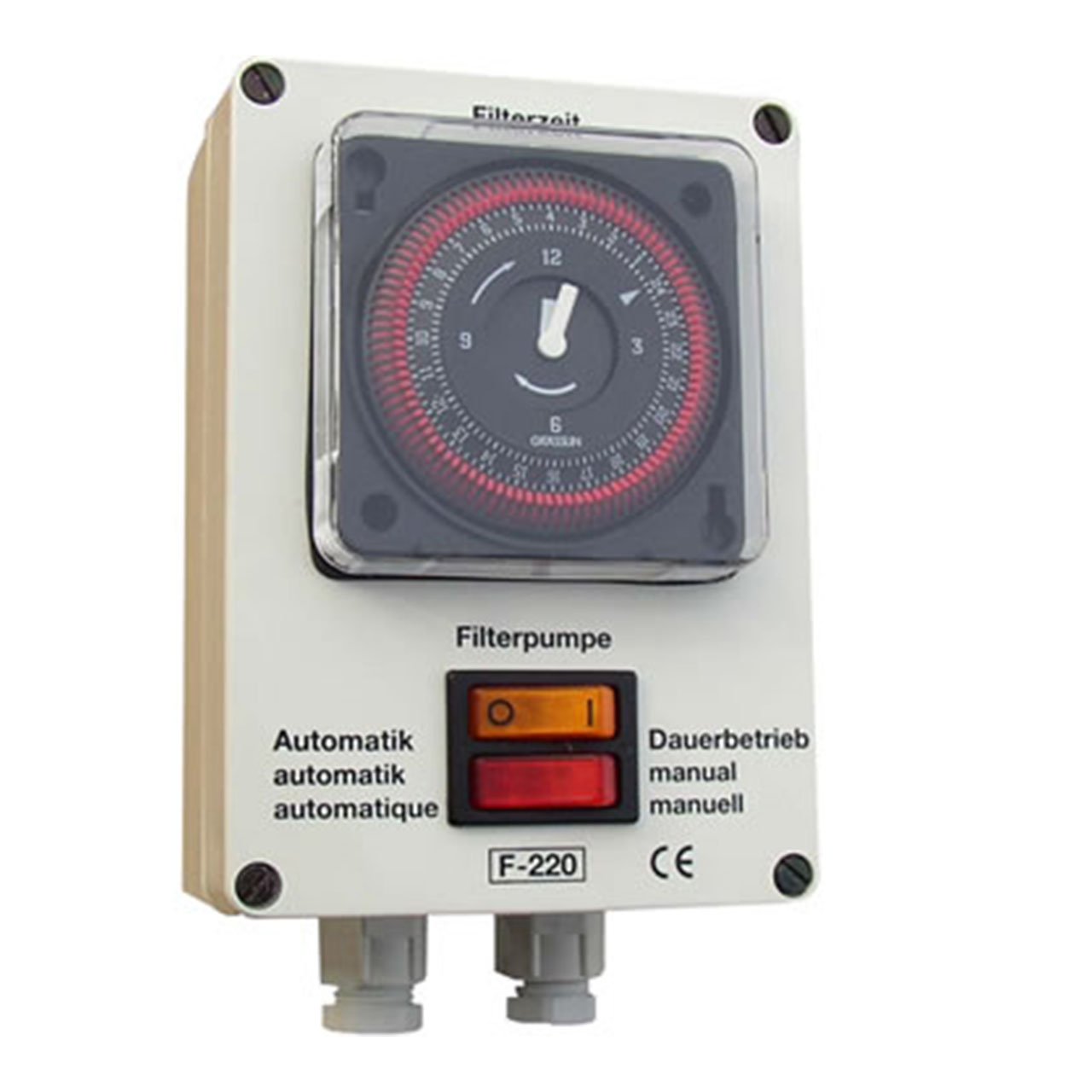 Kompakte, leicht bedienbare Filtersteuerung der Einstiegsklasse für 230 V Filterpumpe mit analoger Schaltuhr.