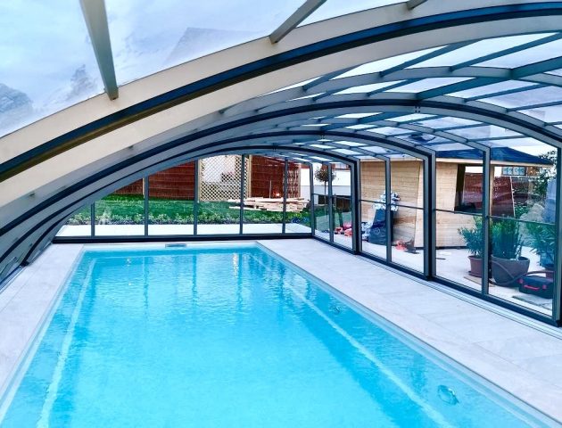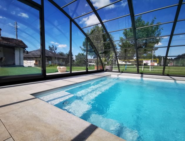 Dank der stabilen Bögen und der fast vertikalen Wand ist die Aluna® Delta II besonders widerstandsfähig. Ihre hohe Ergonomie, die serienmäßige Tür und die Widerstandsfähigkeit gegen extreme Wetterbedingungen wie Regen, Wind und Schnee machen sie zur idealen Lösung, um den Pool auch bei geschlossenem Dach komfortabel zu nutzen.