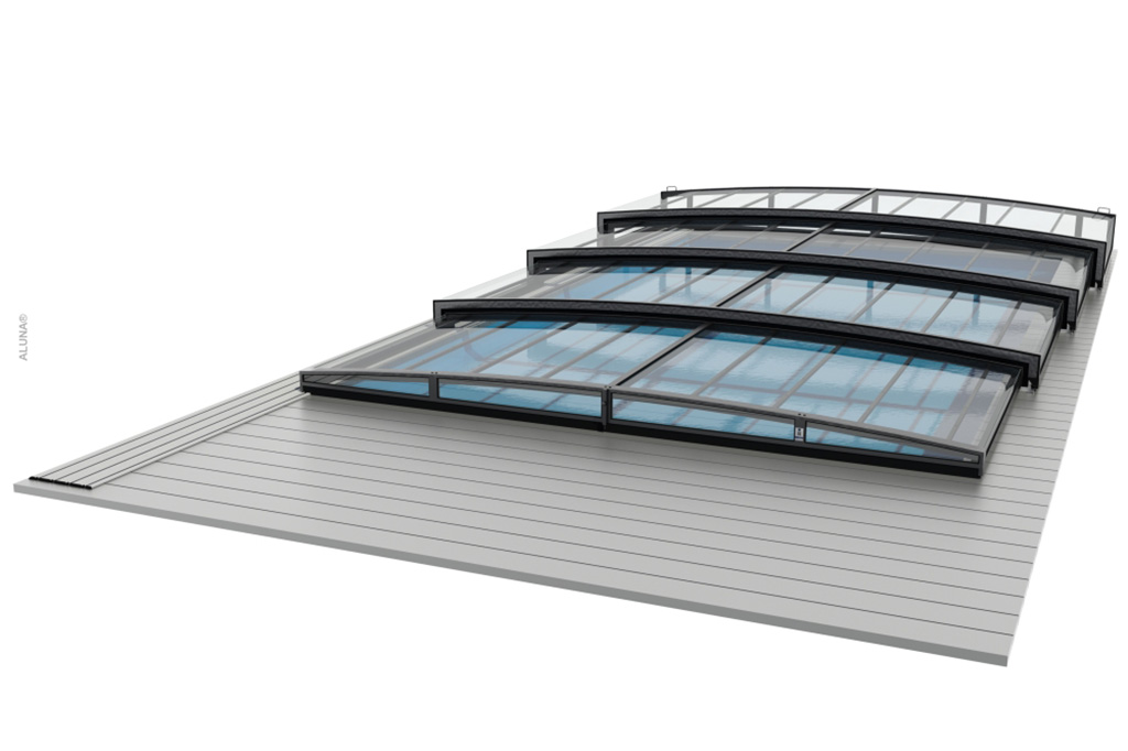 Dieses Konzept überzeugt durch eine besonders robuste und langlebige Konstruktion, die sich dezent in jede Umgebung einfügt – ideal für alle, die Wert auf luxuriöse Details und zurückhaltende Eleganz legen. Von vielen Kunden geschätzt, zählt dieses flache Pooldach zu den designstärksten Modellen der Aluna®-Serie.