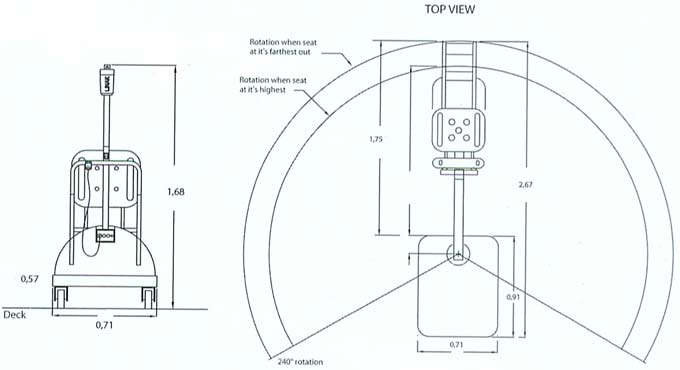 Die maximale Tragkraft beträgt 136 kg. Der Schwenkradius von 240º ermöglicht ein leichtes Bewegen in den Pool oder zurück an den Rand. Ein einfacher und sicherer Einstieg für ältere und / oder Menschen mit eingeschränkter Beweglichkeit.