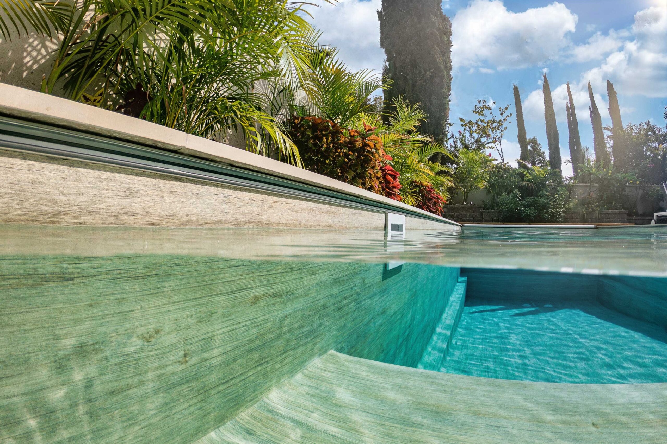Ja, das Trittschutz-Profil (Trittschutz) ist separat erhältlich und wird für rutschige Bereiche wie Pooleinstiege und Leitern dringend empfohlen. - Wie wird die Wassertemperatur bei Holzoptik wahrgenommen?