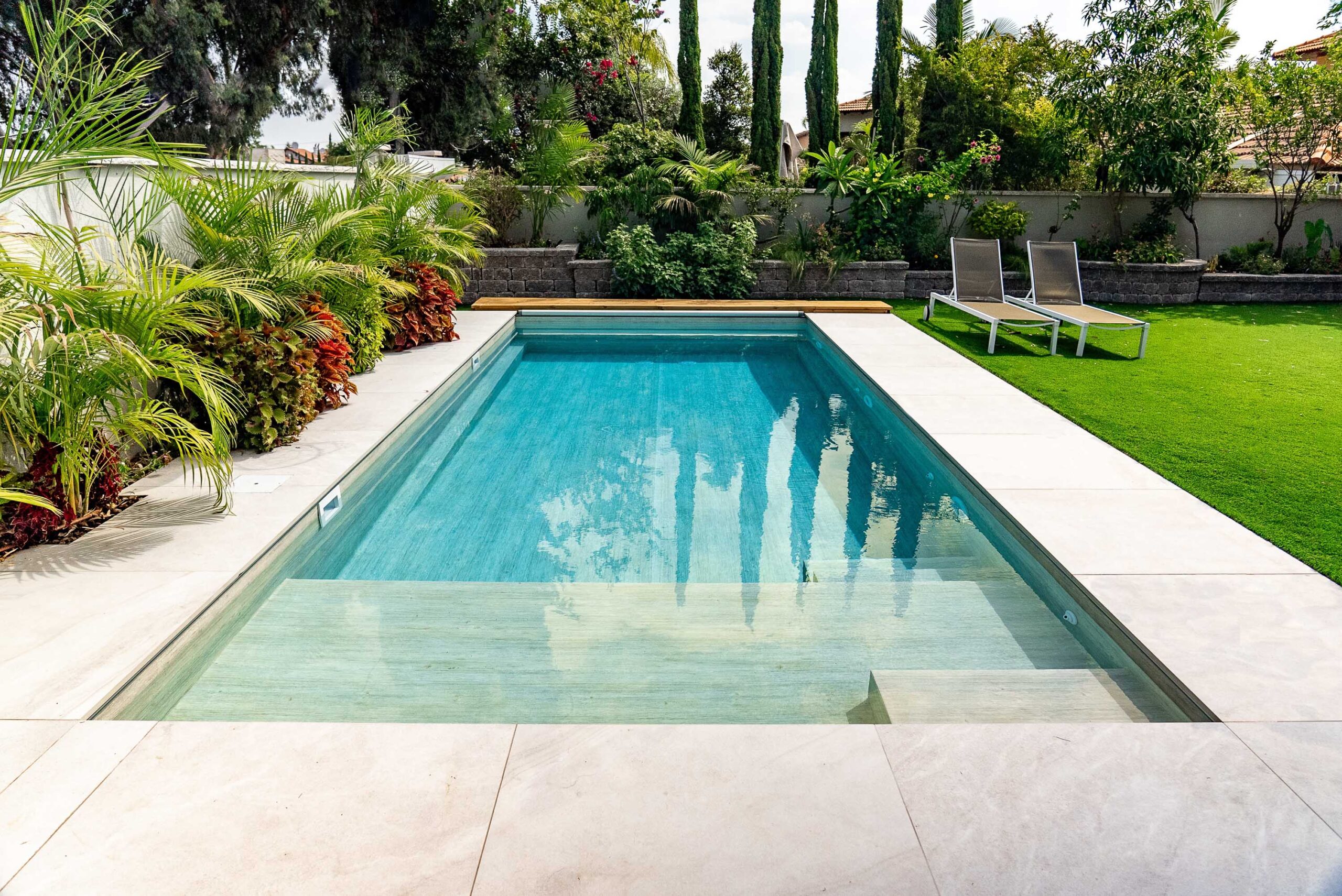 Erfahrene Heimwerker können kleinere Pools selbst auslegen. Bei größeren oder komplexeren Poolformen wird ein Fachbetrieb empfohlen. Die exakte Anpassung an die Poolform ist entscheidend für Haltbarkeit und Optik. - Welche Rollbreiten sind lieferbar?