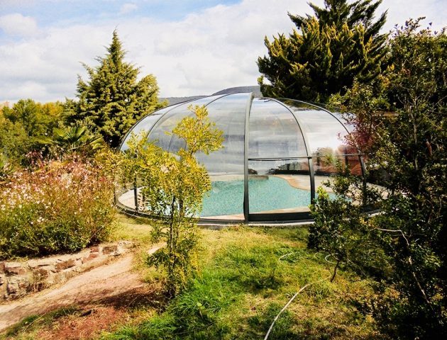 Diese Schwimmbadüberdachung überzeugt durch ihre außergewöhnliche Ergonomie – dank durchdachter Griffanordnung und einem besonders komfortablen Verschiebesystem der beweglichen Segmente. Trotz der markanten Form ist die Konstruktion äußerst stabil, dicht und technisch auf dem neuesten Stand – ermöglicht durch innovative Aluna®-Technologien.