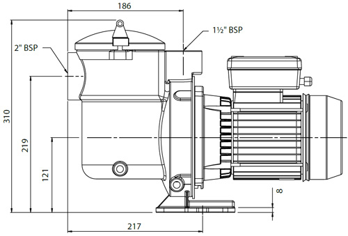Bronze-Schwimmbadbronzepumpe speziell für den Einbau in Schwimmbadfiltern entwickelt. Außergewöhnlich gute Ansaugeigenschaften und unter dem Gesichtspunkt der Servicefreundlichkeit entwickelt. Pumpen standardmäßig mit europäischen Motoren ausgerüstet, die den VDE-Schutzbestimmungen (IP 55) entsprechen. Eine präzisionsgeläppte Kohlenstoff-Keramik-Dichtung garantiert absolute Dichtheit. Speziell entwickeltes Kunststoff-Lautrad, aus glasfaserverstärktem Lexan hergestellt, dynamisch ausgewuchtet, bürgt für einen präzisen, ruhigen Lauf und höchsten Wirkungsgrad. Verankerte Vorfilterkorb (5") verhindert Eindringen von größeren Schmutzteilen in die Pumpe und somit Verstopfen des Laufrades.
