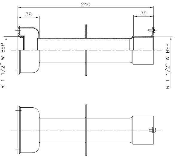 Wanddurchführung aus Edelstahl V2A. Beidseitig mit 1½" Innengewinde. Mit Erdungsanschluss.