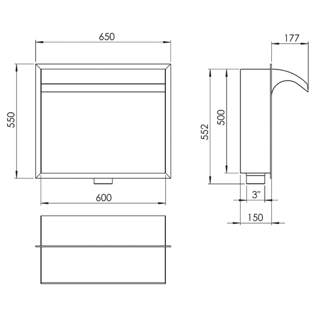 Wasserfall aus hochglanzpoliertem V4A, 600 mm breit. Das integrierte Filtersystem (außer 34034) garantiert einen gleichmäßigen Wasserfluss. Anschluss 3”. Auf Anfrage ist auch ein Wasserfall mit einer Breite von 3.000 mm lieferbar.